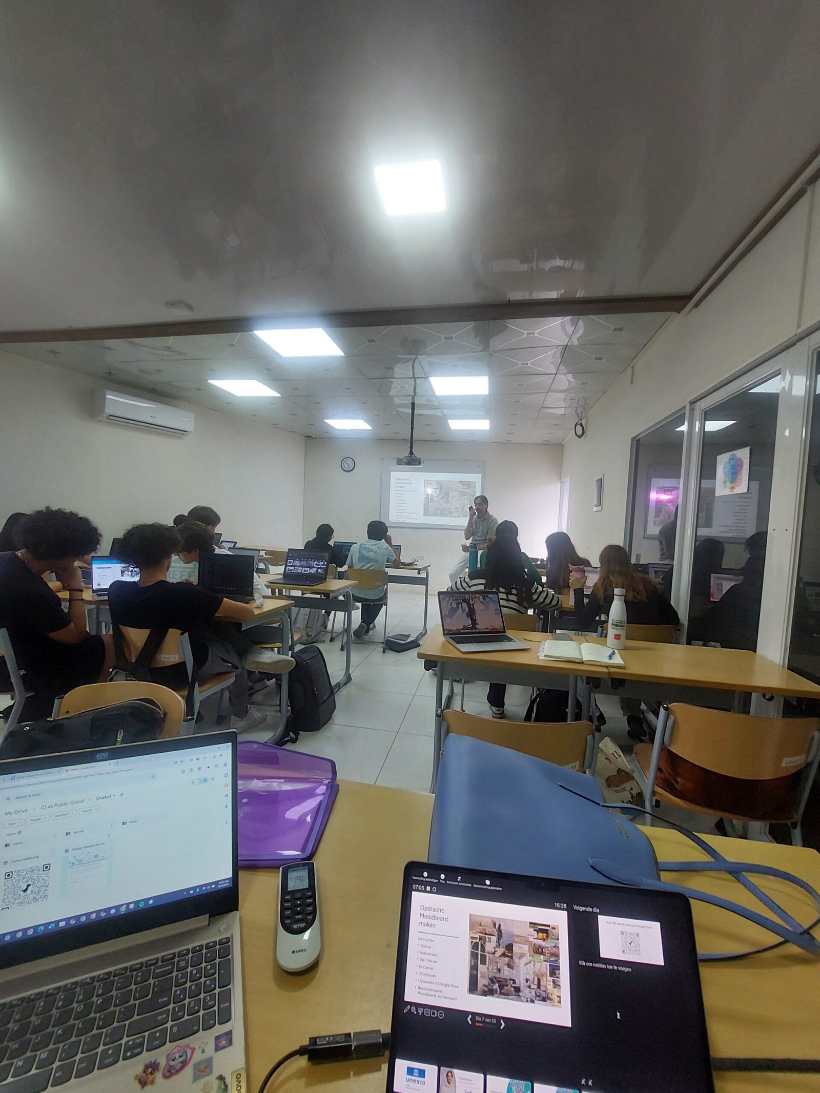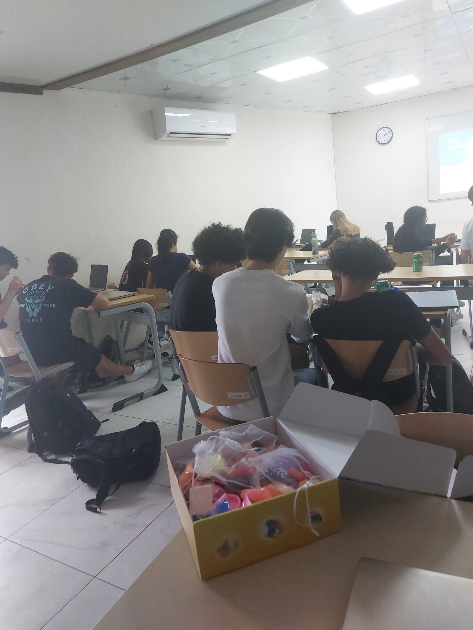 Tijdens de workshop ontdekten de leerlingen hoe informatie onze meningen vormt en waarom kritisch en bewust omgaan met media zo belangrijk is. Op hun laptops ontwierpen ze een persoonlijk moodboard over hun visie op communicatie. De meeste leerlingen deden dat digitaal in Canva, anderen gebruikte Powerpoint.